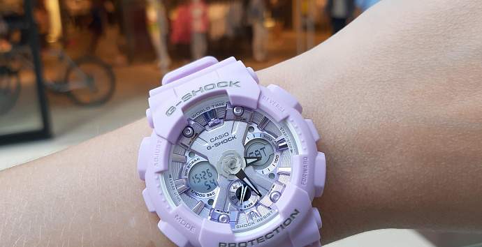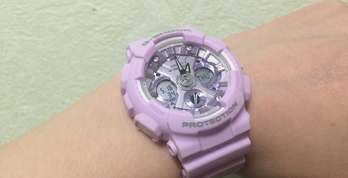 Давно мечтала о часах G-SHOCK в матовом сиреневом цвете,а когда еще и циферблат сверкает фиолетовым.Я просто счастлива ,что наконец-то нашла такие часы,к тому же противоударные и водостойкие и с кучей функций.