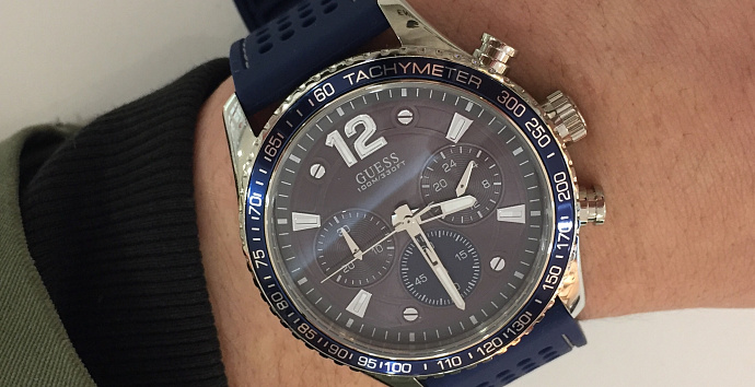 Fleet. Часы-хронограф с секундомером и тахиметром. Тахиметр Шкала тахиметра для измерения средней скорости движения. Тахиметр предназначен для расчета скорости на основании времени в пути. Чтобы его использовать, нужно запустить хронограф (либо начать измерение, когда секундная стрелка находится у нулевой отметки). После преодоления дистанции в 1 км хронограф останавливают (либо засекают положение секундной стрелки). Отметка на тахиметрической шкале, напротив которой остановилась секундная стрелка, и есть скорость в км/ч.