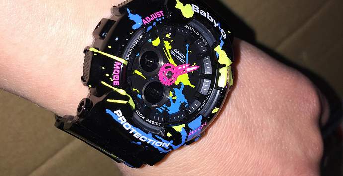 Компания Сasio BABY-G представляет новую коллекцию Splatter Pattern на базе модели BA-120 ,которые отображают современное уличное искусство. Коллекция представлена в черном и белом цветах с имитацией брызг краски на корпус, ремешок и циферблат.Такая раскраска часов придаст вашему образу игривое настроение.