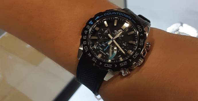 Компания Casio представляет многофункциональные хронографы EDIFICE, в которых динамичный дизайн сочетается с передовыми технологиями. Новые часы EFS-S550 с питанием от солнечной энергии , отличают вращающийся безель для обратного отсчета времени и сапфировое стекло. Безель с нумерацией служит интуитивно понятной шкалой для отображения оставшегося времени до запланированного события. Так же поворотом безеля на необходимо количество секунд можно отсчитывать временные промежутки. Модель доступна в двух расцветках с желтыми и оранжевыми акцентами,  ремешки часов выполнены из нейлона и металла соответственно.